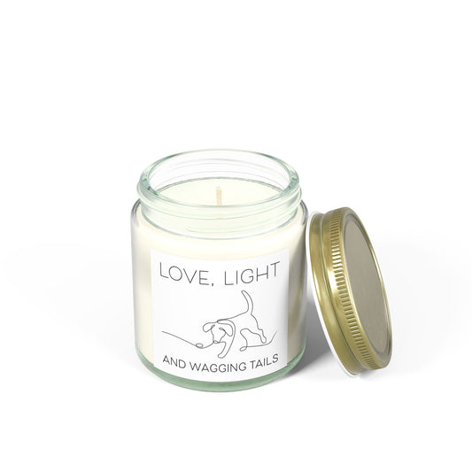 Love, Light and Wagging Tails Scented Candles, Coconut Apricot Wax (9oz)